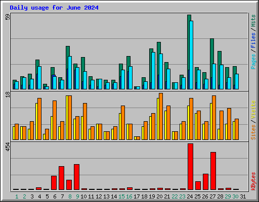 | Day | Hits | Files | Pages | Visits | Sites | KBytes | ||||||